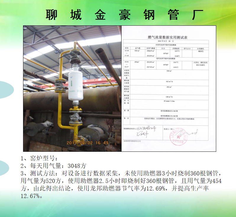 便用龙邦节能助燃器后天燃气节能率为12.6%