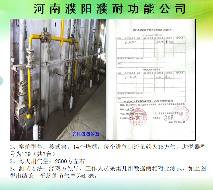 使用龙邦节能助燃器后天燃气节能率为27.8%