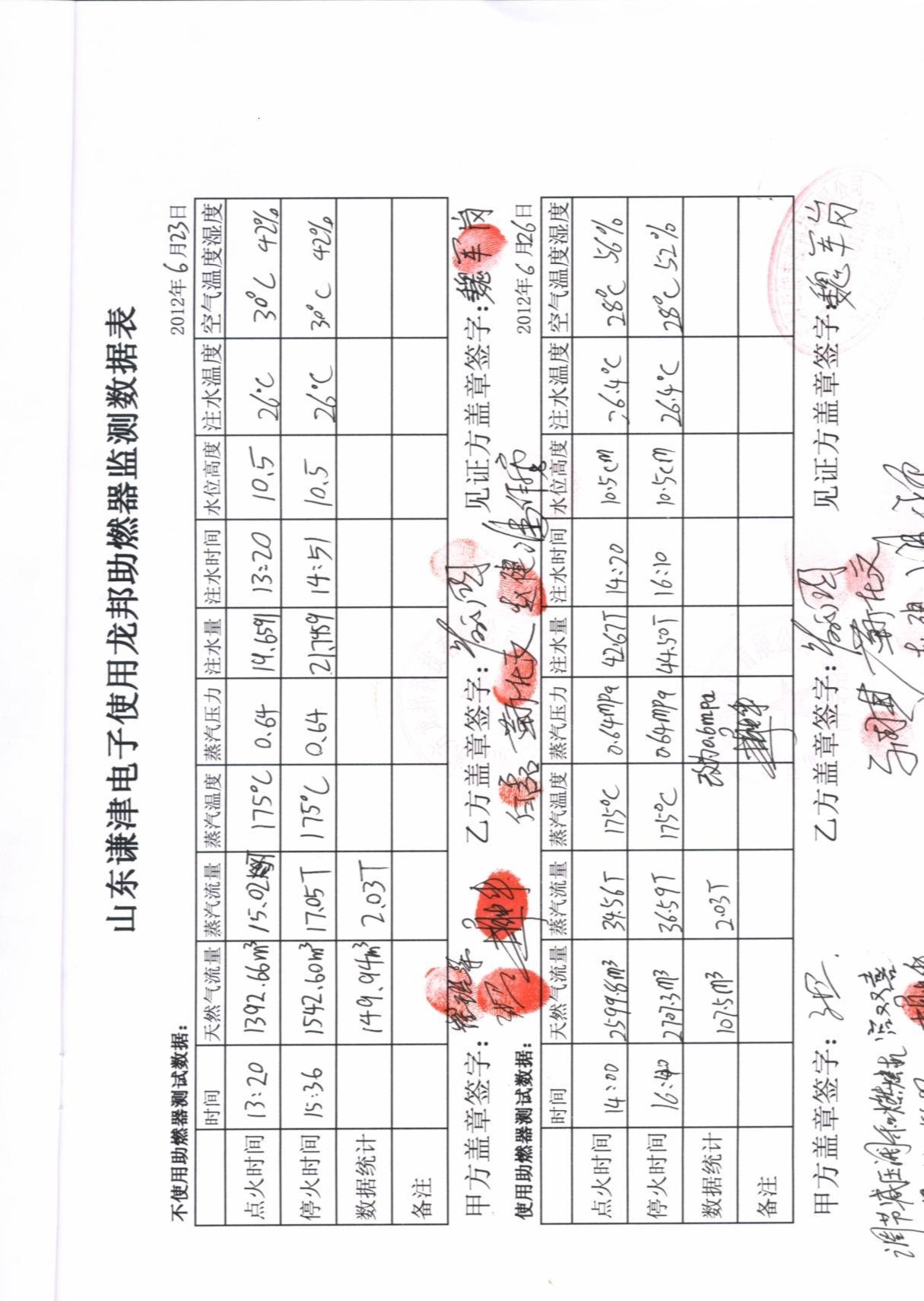 使用龙邦节能助燃器后天燃气节能率为28.3%